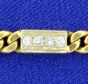 In 18K yellow gold, it is 7 1/4 inches long and contains 1/2ct total weight of high quality diamonds, VS clarity/G color. It has a safety clasp. 15.4g