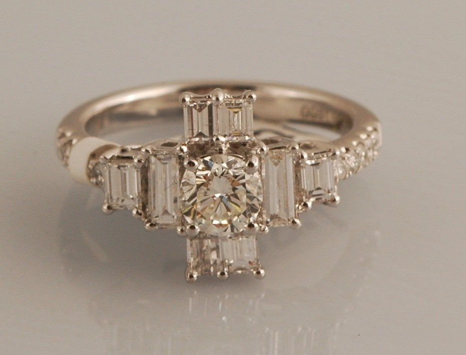 Diamond Ring. 10Rd Diamonds 0.17ct, 1D Stone total of 0.51ct, 8 bg Stones 0.88ct, (Total Diamond Weight 1.56 ct) 4.5 grams of 18K