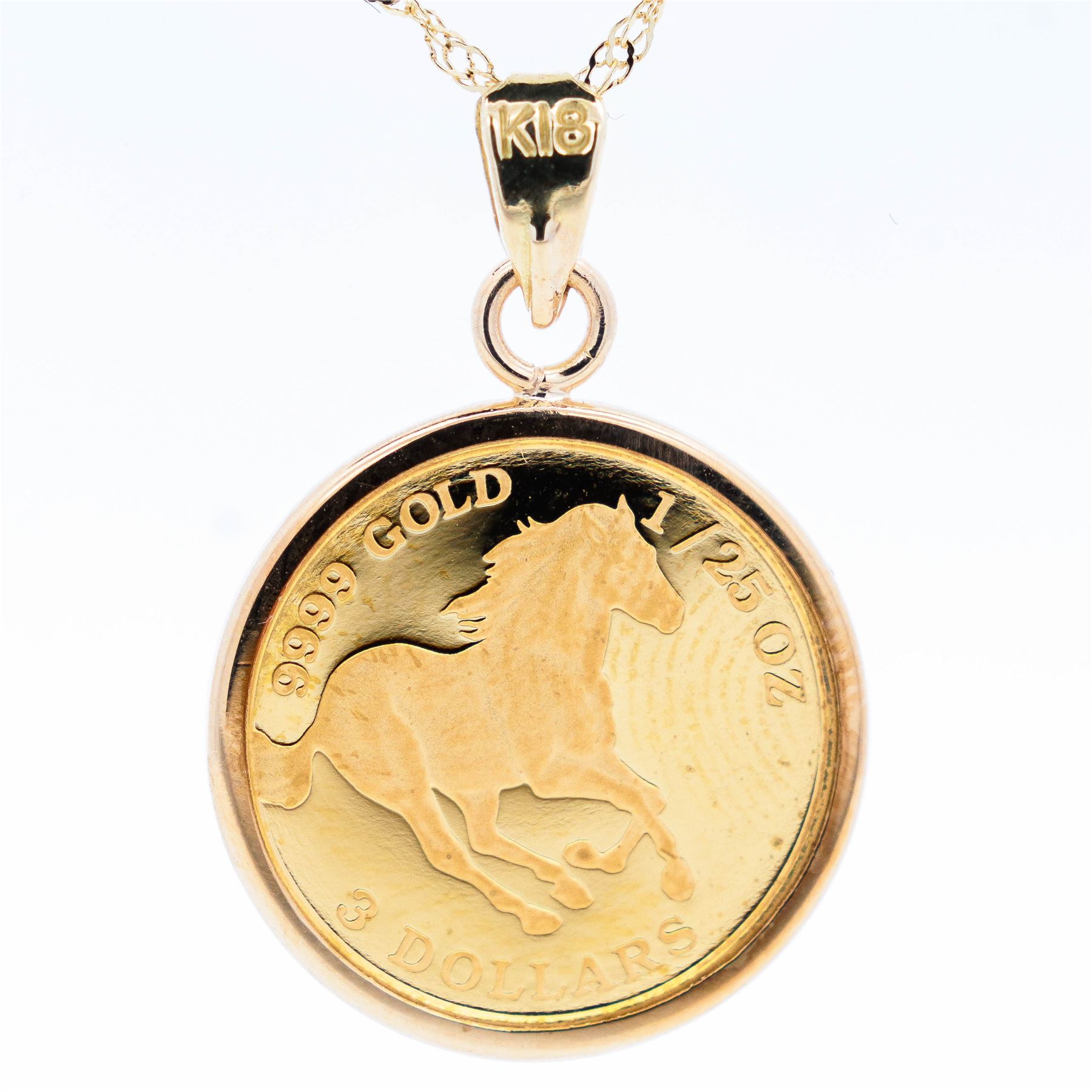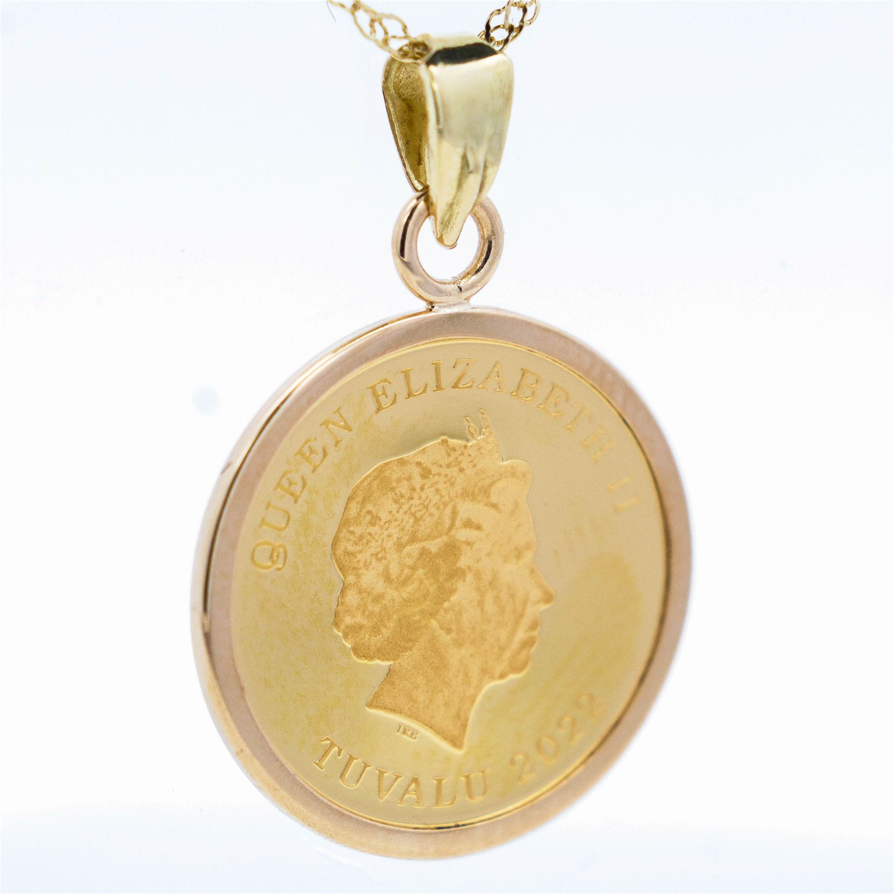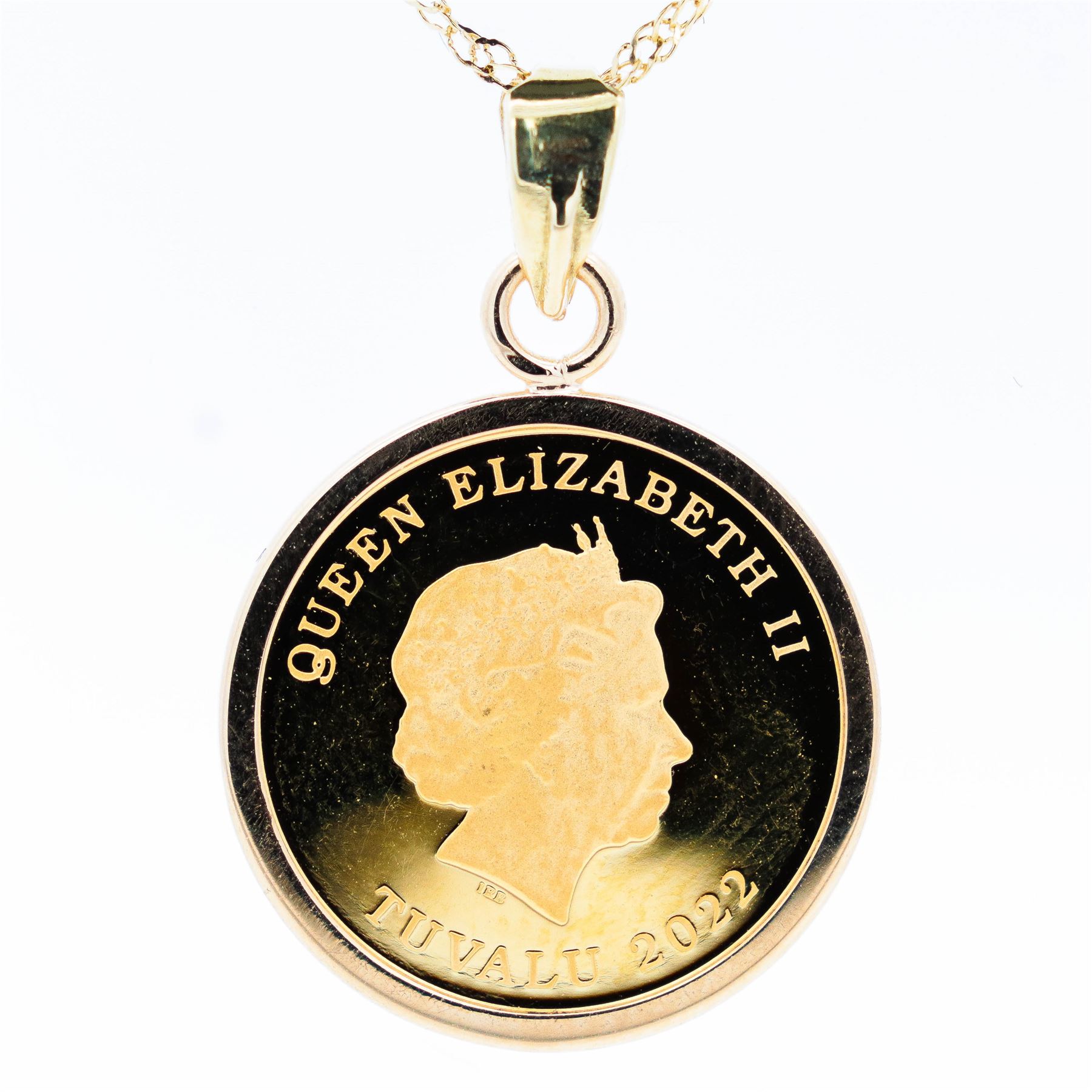 18K/24KYG Queen Elizabeth II 2022 1/25th Oz $3 Coin Necklace