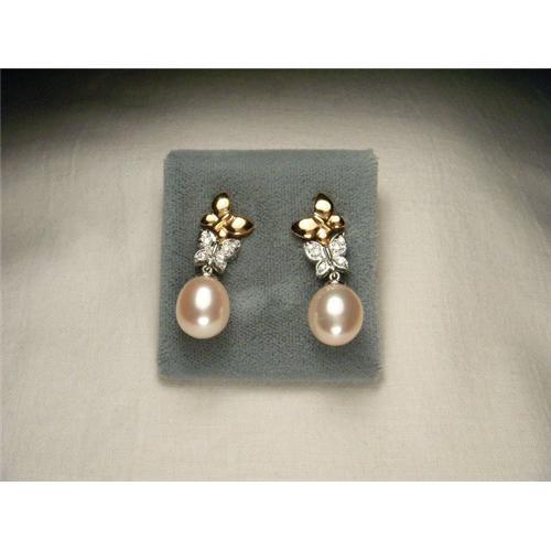 <tr><td>Title:18K Diamond Cultured Pearl Butterfly Earrings</td></tr>