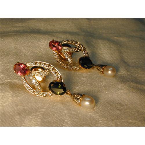 <tr><td>Title:18K Diamond Pearl Peridot Tourmaline Earrings</td></tr>