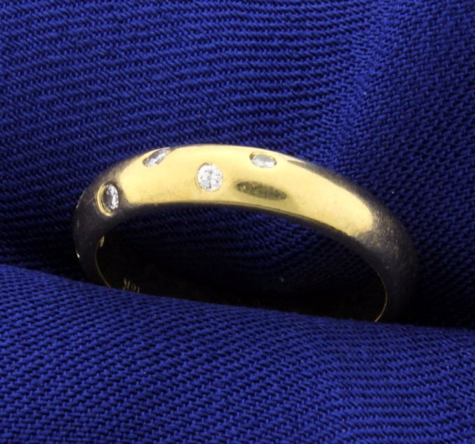 18K yellow gold this ring contains six .02ct high quality diamonds that are SI clarity/G color. Size 5 3/4 4.1g