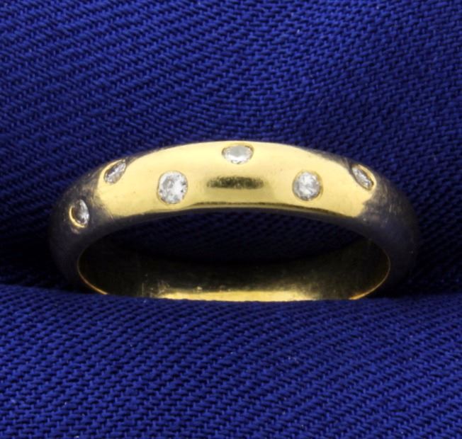 18K yellow gold this ring contains six .02ct high quality diamonds that are SI clarity/G color. Size 5 3/4 4.1g