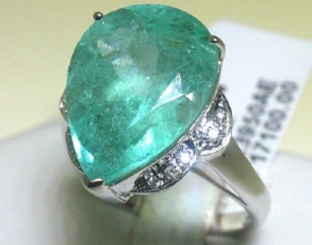 18KW 3.73GRMS EMERALD RING WITH 9.69CT EMERALD STONE & 0.05CT ROUND DIAMONDS