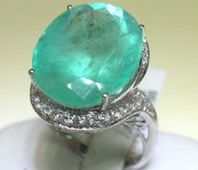18KW 5.35GRMS EMERALD RING WITH 19.98CT EMERALD STONE & 0.70CT ROUND DIAMONDS