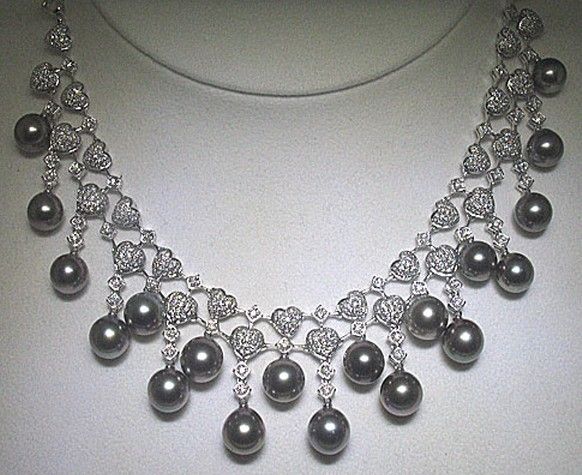 18KW 56.80GRMS NECKLACE WITH 19X8.50MM PEARLS & 3.62CT ROUND DIAMONDS