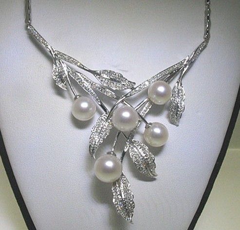 18K NECKLACE 23.46GRMS 1.26CT ROUND DIAMOND & 9.5-11.0MM PEARL