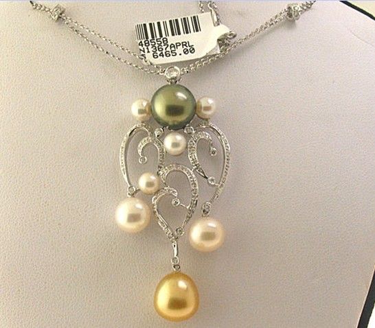18KW 15.40GRMS PEARL NECKLACE WITH 5-10MM MIX PEARLS & 0.74CT ROUND DIAMONDS