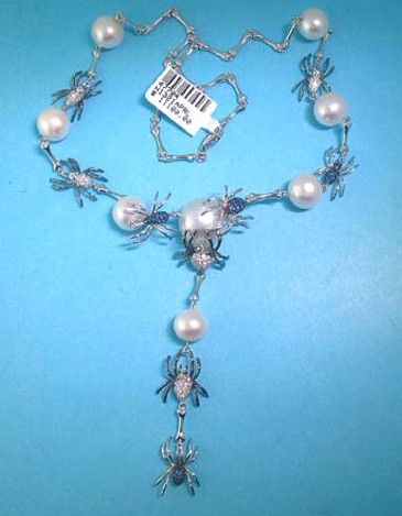 18KW 35.70GRMS NECKLACE WITH 10-14MM PEARLS, 0.61CT SAPPHIRE, & 0.77CT ROUND DIA
