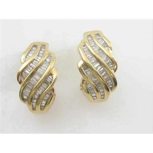 These earrings are 18K Yellow Gold and they are set with 87 FINE Baguette Diamonds. The Diamond Total Weight is an Impressive ONE CARAT!! They measure 5/8" from top to bottom - and they ARE exquisite!
