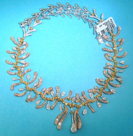 18K TRI COLOR 58.80GRMS NECKLACE WITH 2.29CT PINK, 3.08CT YELL, & 1.68CT RD DIAM