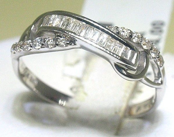 18KW 2.49GRMS LADIES RING WITH 0.16CT BAGET & 0.16CT ROUND DIAMONDS