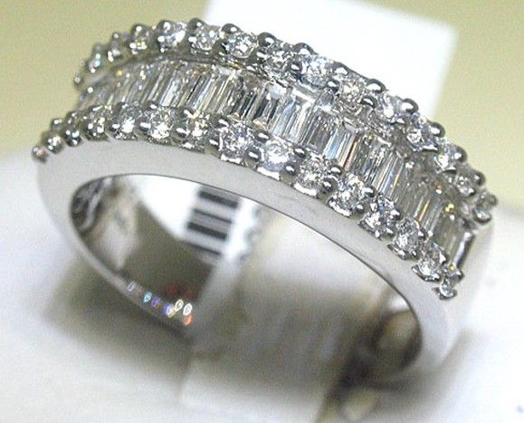 18KW 7.48GRMS LADIES RING WITH 0.68CT BAGET & 0.45CT ROUND DIAMONDS