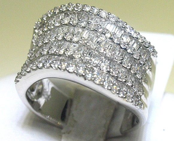 18KW 8.84GRMS LADIES RING WITH 0.91CT BAGET & 0.79CT ROUND DIAMONDS