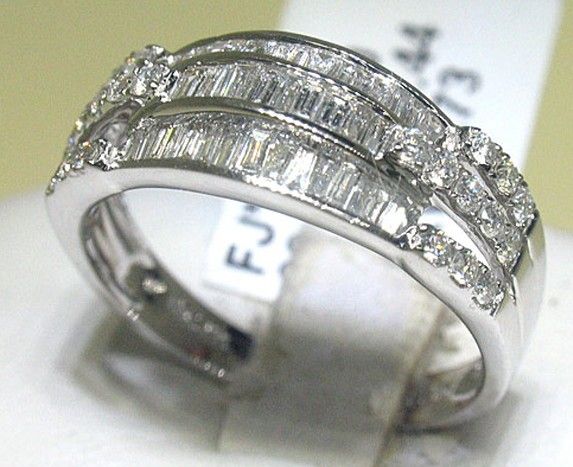 18KW 3.73GRMS LADIES RING WITH 0.44CT BAGET & 0.30CT ROUND DIAMONDS