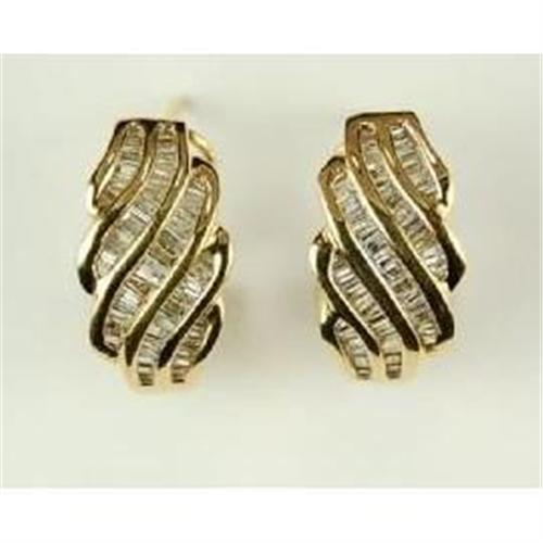 They are 18K Yellow Gold Earrings featuring 87 FINE Quality Baguette Diamonds with a Total Weight = .90 CARATS! The Crescent design measures 1/2" from top to bottom, and the earrings have very well made Omega style backs with Gold posts for pierced ears.