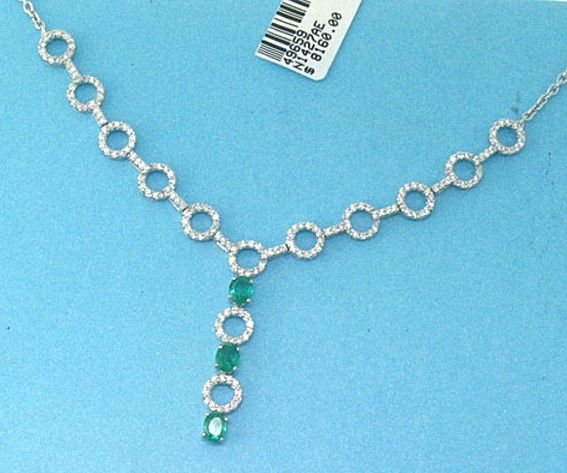 18K NECKLACE WITH 0.93CT RDIA & 0.60CT OVL EMERALD 16.5"