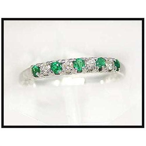 A well-made ring of solid 18K white gold is set with 5 emeralds of pleasing color and luster. The addition of 3 diamonds (.12 carats t.w.) provide brilliant contrast. Only a tiny ding on one emerald that can't be noticed. Otherwise, this ring is in fine condition. Wear it with pride. Size 6 1/4. It was fairly priced for only $350, but now it can be yours for much, much less. NOT TO BE MISSED!