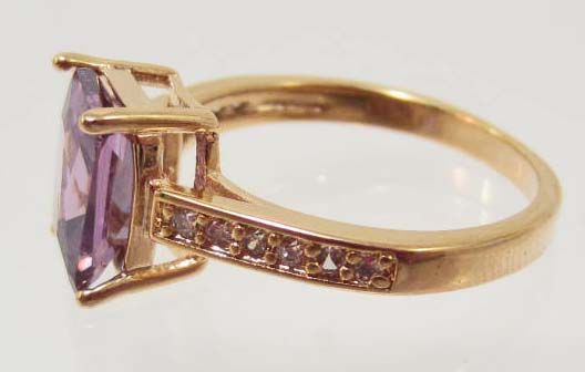 18K GOLD FILLED AMETHYST & CZECH CRYSTAL RING - SZ. 7