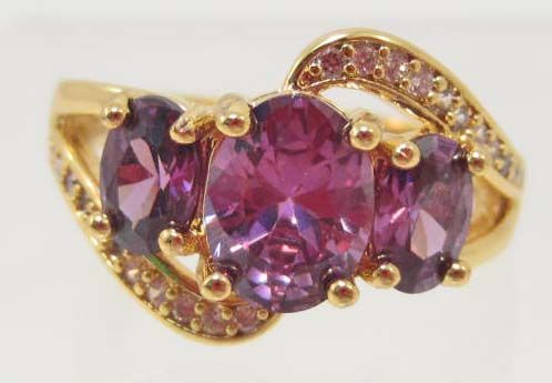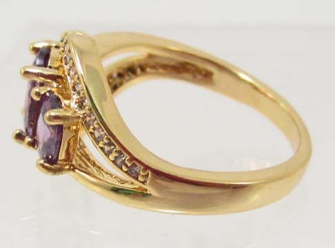 18K GOLD FILLED AMETHYST & CZECH CRYSTAL RING - SZ. 7