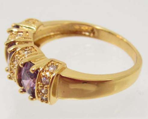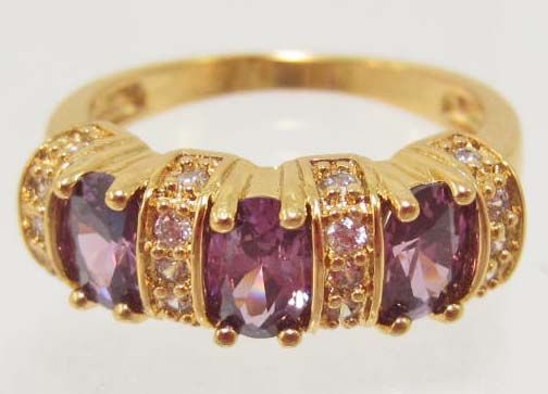 18K GOLD FILLED AMETHYST & CZECH CRYSTAL RING - SZ. 8