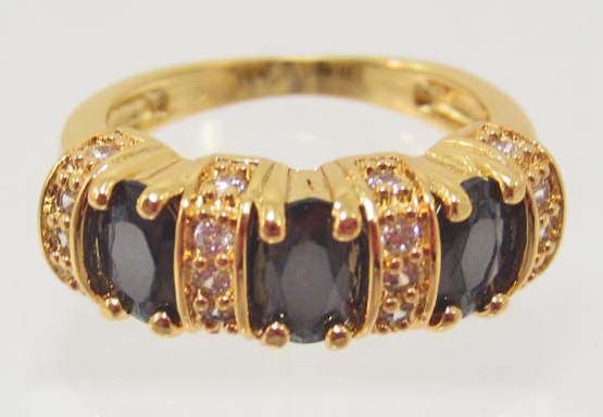 18K GOLD FILLED BLACK ONYX & CZECH CRYSTAL RING - SZ. 6