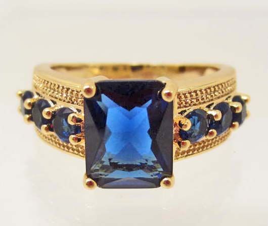 18K GOLD FILLED BLUE SAPPHIRE RING - SIZE 7