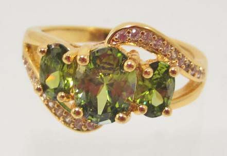 18K GOLD FILLED PERIDOT & CZECH CRYSTAL RING - SZ. 8