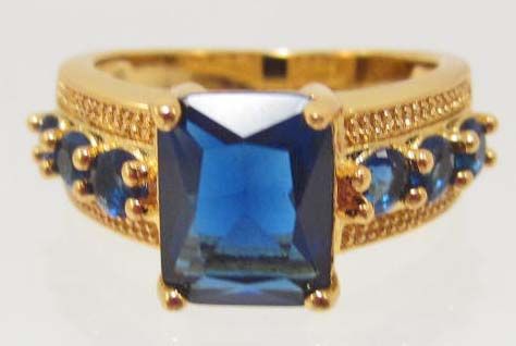 18K GOLD FILLED SAPPHIRE & CZECH CRYSTAL RING - SZ. 6