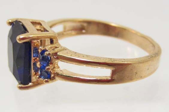 18K GOLD FILLED SAPPHIRE & CZECH CRYSTAL RING - SZ. 7