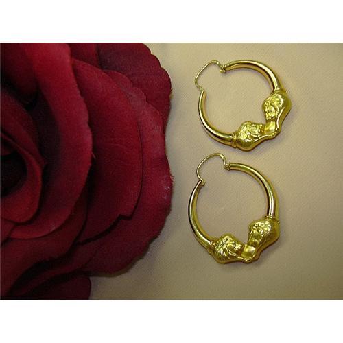 <tr><td>Title:18K GOLD HOOP EARRINGS FEATURING 2 LIONS</td></tr>