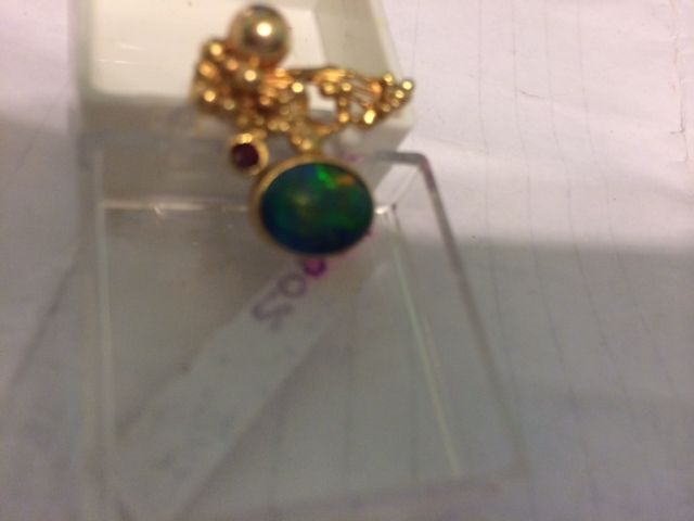 18K GOLD LADIES RING W/OPAL, RUBY AND PEARL