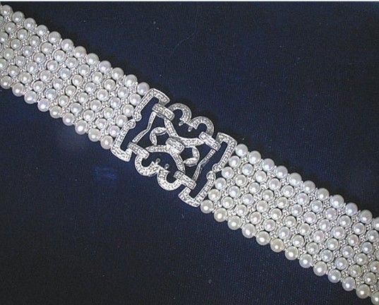 18K WHITE BRACELET 36.17GRMS WITH 1.35CT TW ROUND DIAMOND & 4.00MM PEARL
