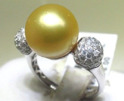 18KW 5.00GRMS LADIES RING WITH 12.00MM PEARL & 1.02CT ROUND DIAMONDS