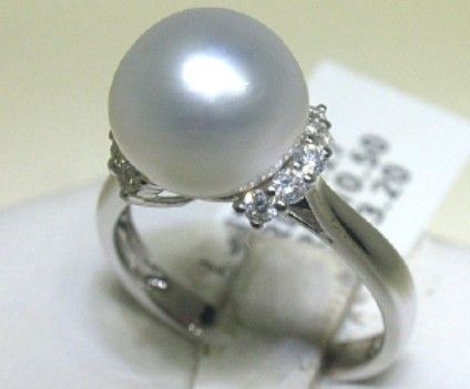 18KW 3.20GRMS LADIES RING WITH 10.50MM PEARL & 0.27CT ROUND DIAMONDS