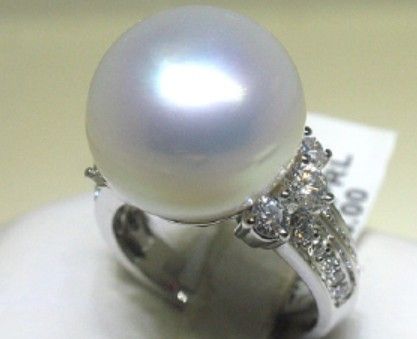 18KW 7.10GRMS LADIES RING WITH 15.00MM PEARL & 0.81CT ROUND DIAMONDS
