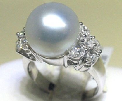 18KW 5.00GRMS LADIES RING WITH 12.00MM PEARL & 1.02CT ROUND DIAMONDS