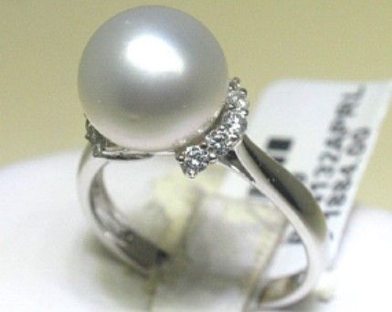 18KW 5.00GRMS LADIES RING WITH 12.00MM PEARL & 1.02CT ROUND DIAMONDS