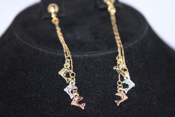 18K GOLD PLATED TRI-COLOR DOLPHIN DANGLING EARRINGS **|**|** 18K GOLD PLATED TRI-COLOR DOLPHIN DANGLING EARRINGS; METAL BRASS; BRAZILIAN JEWELRY; 18K GOLD PLATED ; MSRP: $0