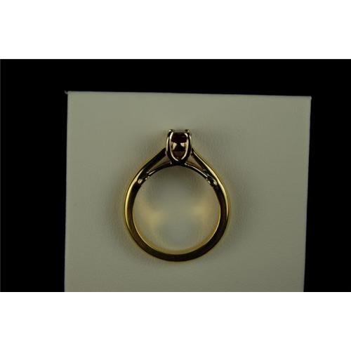 18K Yellow Gold ring featuring an Oval RUBY = 1.06 CARATS! There is 18K White Gold accents each side of this beautiful Ruby. This ring can also be worn as a 'Ruby Engagement Ring'. It is a size 7 1/2 and I can resize it for you.