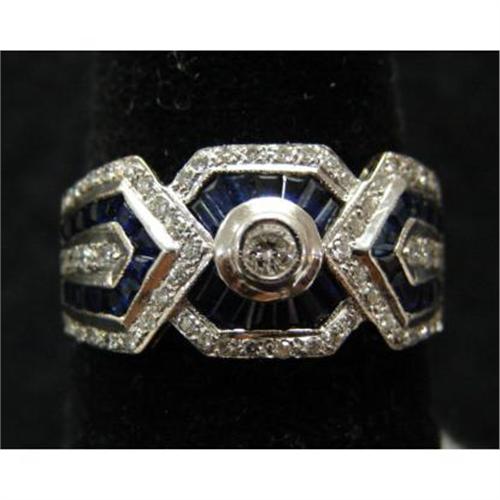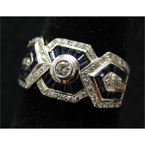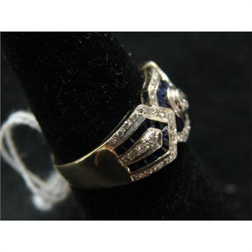 18K YELLOW GOLD DIAMOND & SAPPHIRE RING.