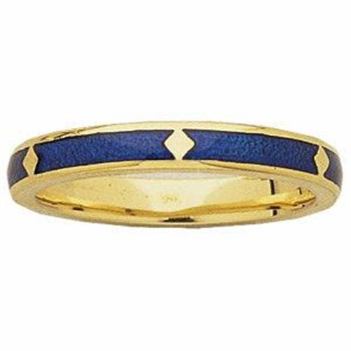 18K Yellow Gold Wedding Band featuring 'Bridal Blue' French Champleve enamelling. This stunning band is a Size 7.