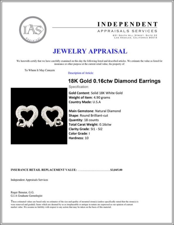 Regarding Appraised Jewelry and Loose Stones - Auctionfarm sends them out to a third party for Retail Replacement Value Appraisals, which are the most common. These types of evaluations are written for insurance needs. This would be the cost to replace the jewelry with an item of equal quality and kind, considered to be the current market price or the replacement value. This type of appraisal is done to protect you in the event of damage or loss of a valuable item. Our appraisals are conducted by independent 3rd Party appraisal firms that utilizes Certified GIA Gemologist. Appraisals should be used for verification of gemstone and/or metal weight, size, and grade only, not actual value. Appraisal value should be considered for insurance purposes only, not actual value, as price varies greatly from retail locations thru out the world. Items should not be purchased with the expectation to resell for appraisal price, or for profit.