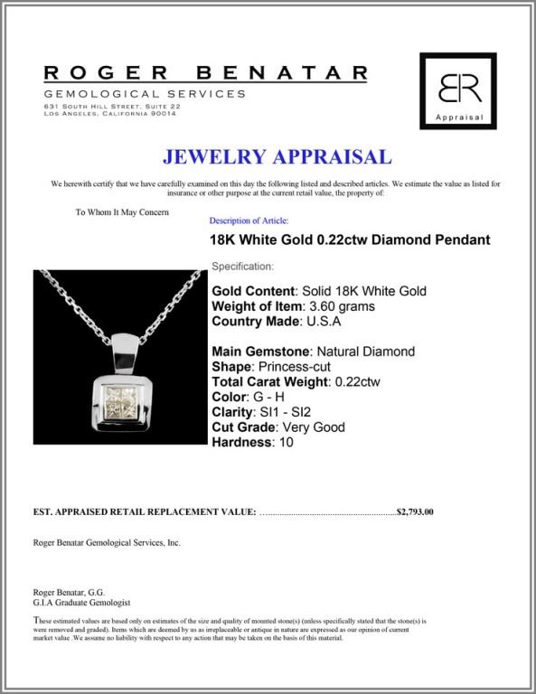 Estimated Retail Replacement Value: $2,793.00
