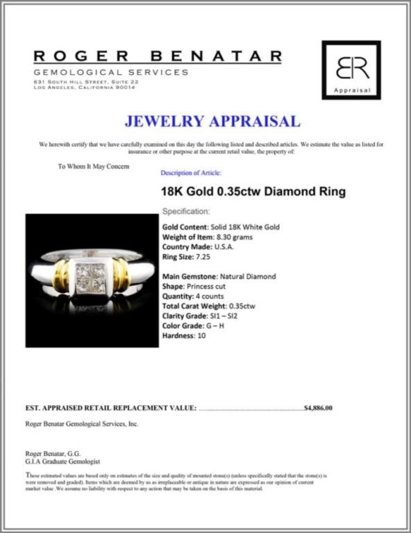 Regarding Appraised Jewelry and Loose Stones - Auctionfarm sends them out to a third party for Retail Replacement Value Appraisals, which are the most common. These types of evaluations are written for insurance needs. This would be the cost to replace the jewelry with an item of equal quality and kind, considered to be the current market price or the replacement value. This type of appraisal is done to protect you in the event of damage or loss of a valuable item. Our appraisals are conducted by independent 3rd Party appraisal firms that utilizes Certified GIA Gemologist. Appraisals should be used for verification of gemstone and/or metal weight, size, and grade only, not actual value. Appraisal value should be considered for insurance purposes only, not actual value, as price varies greatly from retail locations thru out the world. Items should not be purchased with the expectation to resell for appraisal price, or for profit.