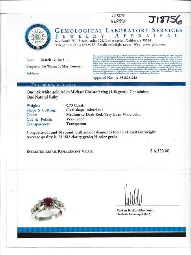 Estimated Retail Replacement Value: $6,320.00