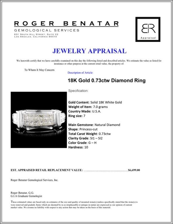 Total Carat Weight: 0.73ctw