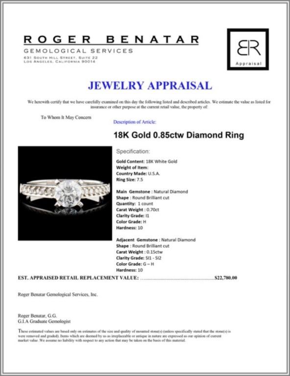 Regarding Appraised Jewelry and Loose Stones - Auctionfarm sends them out to a third party for Retail Replacement Value Appraisals, which are the most common. These types of evaluations are written for insurance needs. This would be the cost to replace the jewelry with an item of equal quality and kind, considered to be the current market price or the replacement value. This type of appraisal is done to protect you in the event of damage or loss of a valuable item. Our appraisals are conducted by independent 3rd Party appraisal firms that utilizes Certified GIA Gemologist. Appraisals should be used for verification of gemstone and/or metal weight, size, and grade only, not actual value. Appraisal value should be considered for insurance purposes only, not actual value, as price varies greatly from retail locations thru out the world. Items should not be purchased with the expectation to resell for appraisal price, or for profit.