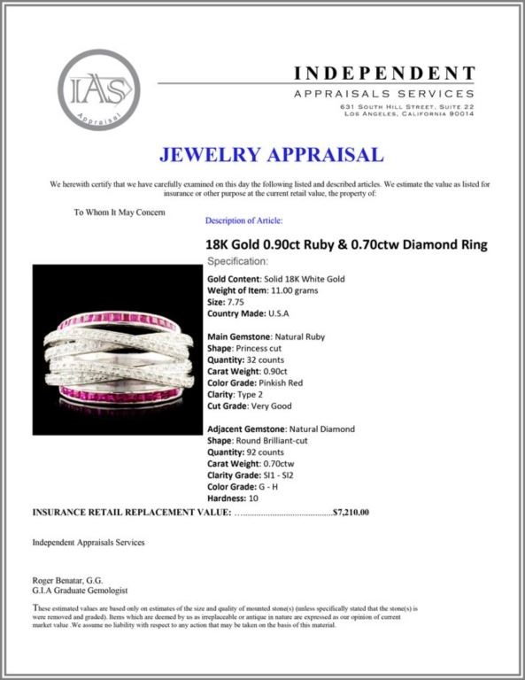 Regarding Appraised Jewelry and Loose Stones - Auctionfarm sends them out to a third party for Retail Replacement Value Appraisals, which are the most common. These types of evaluations are written for insurance needs. This would be the cost to replace the jewelry with an item of equal quality and kind, considered to be the current market price or the replacement value. This type of appraisal is done to protect you in the event of damage or loss of a valuable item. Our appraisals are conducted by independent 3rd Party appraisal firms that utilizes Certified GIA Gemologist. Appraisals should be used for verification of gemstone and/or metal weight, size, and grade only, not actual value. Appraisal value should be considered for insurance purposes only, not actual value, as price varies greatly from retail locations thru out the world. Items should not be purchased with the expectation to resell for appraisal price, or for profit.