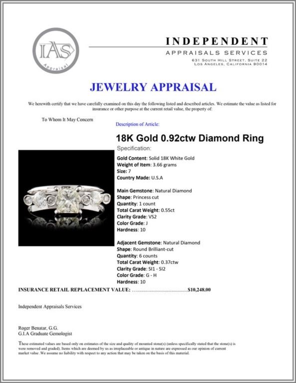 Regarding Appraised Jewelry and Loose Stones - Auctionfarm sends them out to a third party for Retail Replacement Value Appraisals, which are the most common. These types of evaluations are written for insurance needs. This would be the cost to replace the jewelry with an item of equal quality and kind, considered to be the current market price or the replacement value. This type of appraisal is done to protect you in the event of damage or loss of a valuable item. Our appraisals are conducted by independent 3rd Party appraisal firms that utilizes Certified GIA Gemologist. Appraisals should be used for verification of gemstone and/or metal weight, size, and grade only, not actual value. Appraisal value should be considered for insurance purposes only, not actual value, as price varies greatly from retail locations thru out the world. Items should not be purchased with the expectation to resell for appraisal price, or for profit.